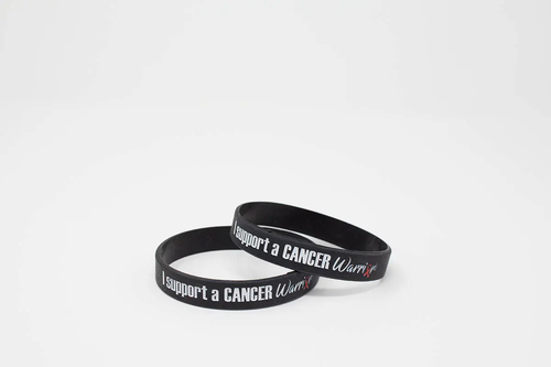 Color-fill debossed silicone wristbands have become one of the most popular and stylish promotional accessories worn worldwide. Being inexpensive, comfortable, durable, and waterproof, silicone wristbands are the ideal solution for fundraising events and parties. The color-fill debossed messaging makes them highly-visible and perfect for supporting the supporting Cancer Warriors.