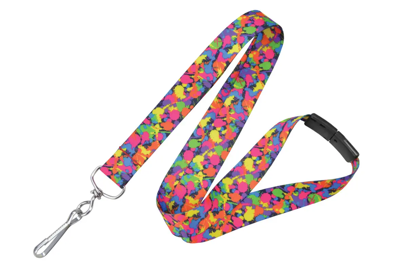 Paint Splatter lanyards are great for anyone who wants to add a little color into their day. Imprint is Dye-Sublimated and has a silky feel to it. Multi-color paint splatter 3/4" (19mm) Lanyard with black breakaway and NPS Swivel-Hook