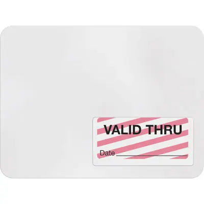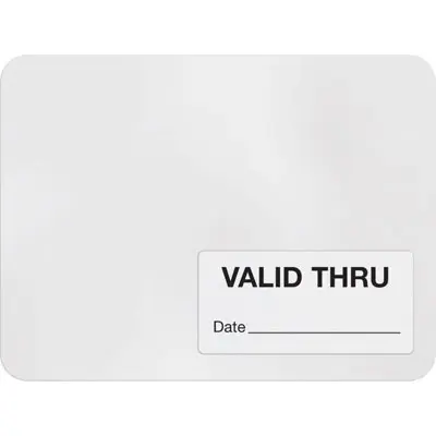 Provide long-term guests with secure, clearly identified badges using the 7-Day Expiring Token Front featuring a prominent "VALID THRU" title. Designed for use with a compatible token back or badge back with token expiration area, this token front completes a two-piece expiring badge solution that visibly expires after seven days.