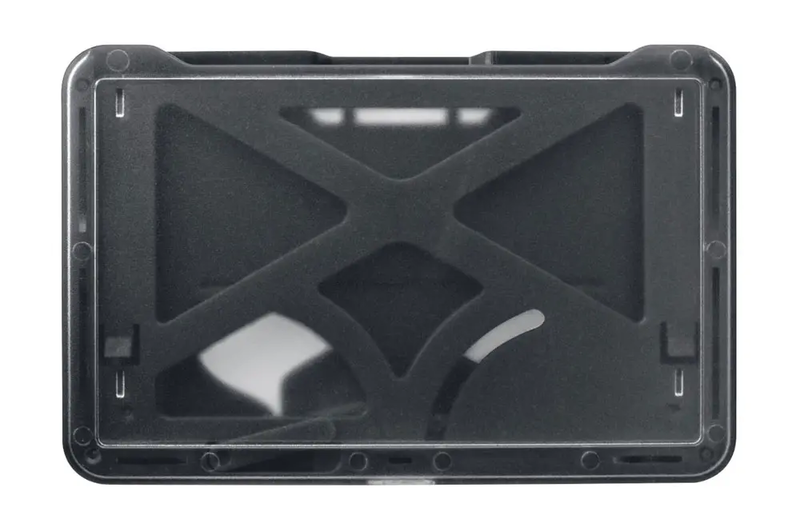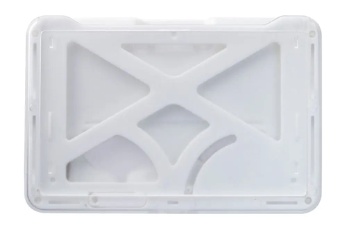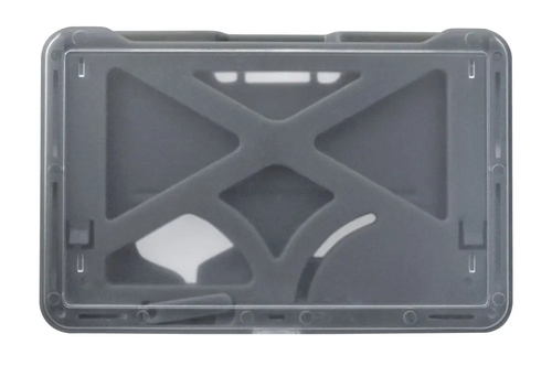 The patented B-Holder holds up to three cards at once while protecting the cards from bending, cracking and other damage. This innovative accessory is able to hold one 30 mil card in the front and either two 30 mil cards or one 60 mil card in the back. The front portion features a clear frosted finish, making it perfect for displaying a photo ID badge, while the back of the holder features two convenient levers that slide the cards in the front or back out with ease.