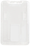 A convenient card-carrying accessory, the B-Holder is a rigid one-card badge holder that will protect your card from bends and creases while still clearly displaying its face. The vertical B-Holder features a frosted front to reduce light and sun exposure and is available in a variety of colors. A handy thumb-notch on the back makes it easy to remove your badge or card for scanning or swiping.