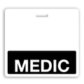 Each Badge Buddy features a large area of color and a worker's title printed in clear, bold text. This Badge Buddy features a black color area and ""MEDIC"" text, making it a great Badge Buddy for the medics at healthcare facilities.