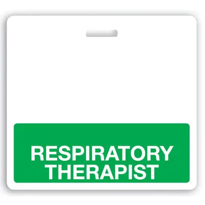 Each Badge Buddy features a large area of color and a worker's title printed in clear, bold text. This Badge Buddy features a green color area and ""RESPIRATORY THERAPIST"" text, making it a great Badge Buddy for the respiratory therapists at healthcare facilities.