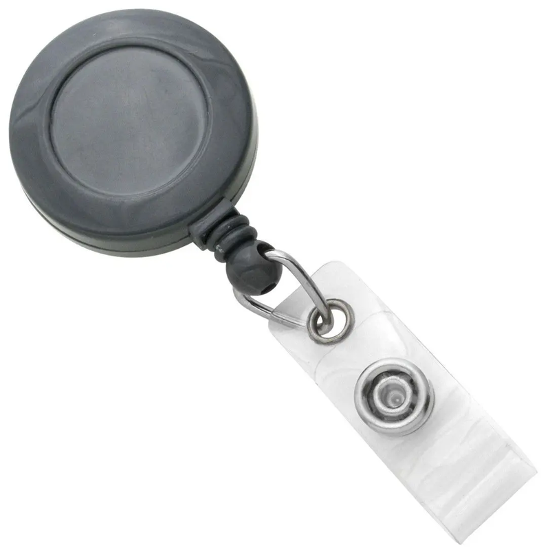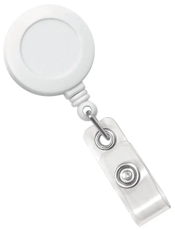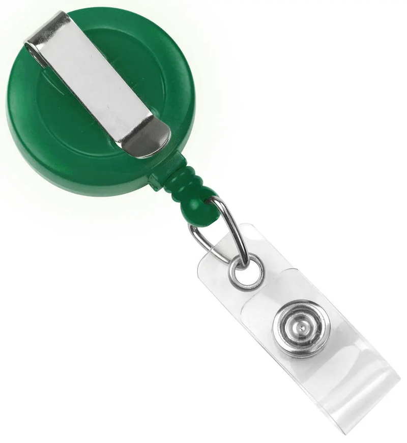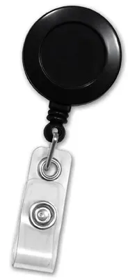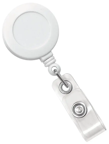 The rugged ABS housing stands up to daily use, while the clear vinyl strap secures slotted credentials. A slide-style belt clip fastens quickly to belts or pockets, and the smooth 34" (864 mm) retractable cord gives ample reach to readers without removing your badge. Available in multiple colors and customizable with your logo or text.
