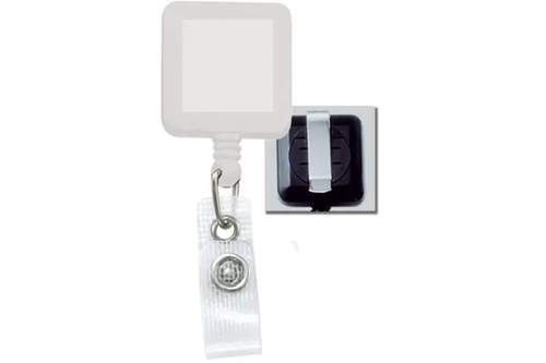 Badge Reel with Reinforced Vinyl Strap & Belt Clip Square