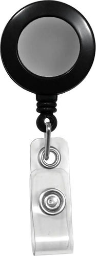Black Badge Reel with Silver Sticker, Clear Vinyl Strap & Belt Clip