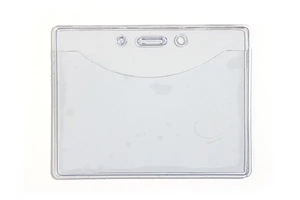 Clear vinyl horizontal Phthalates-free badge holder. Slot & chain holes. Insert size 3 3/8" x 2 1/4" (57 x 86mm). Minimum order 100 pieces