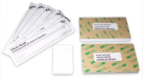 Qty 1 506277-001, (10) Cleaning Cards; Qty 1 508976-001, (10) Cleaning Roller Cards; Qty 1 552141-002, (10) Isopropanol Alcohol Cleaning Card; and Qty 1 507377-001, (5) Cleaning Swabs