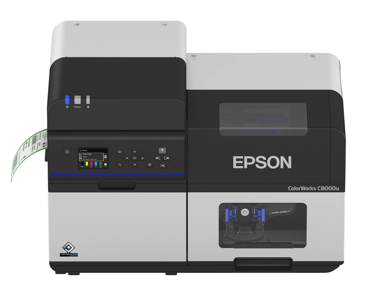 The Epson ColorWorks CW-C8000 is a fast, high-performance 4" color label printer designed for mid- to high-volume production runs. Featuring PrecisionCore® Heat-Free technology and UltraChrome® DL pigment inks, it delivers sharp text, accurate barcodes, and vibrant color at speeds up to 11.8" per second. With high-capacity 480 mL ink packs (1.9 L total), advanced connectivity, and powerful remote management via Epson Cloud Solution PORT®, the CW-C8000 is built for demanding, on-demand labeling environments.