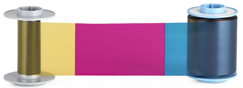 This ribbon includes Yellow (Y), Magenta (M), Cyan (C), and a resin Black (K) panel, making it perfect for printing vivid images and sharp black text or barcodes on the front of the card. It is fully optimized for use with HDP film and can be paired with overlaminate for added durability.