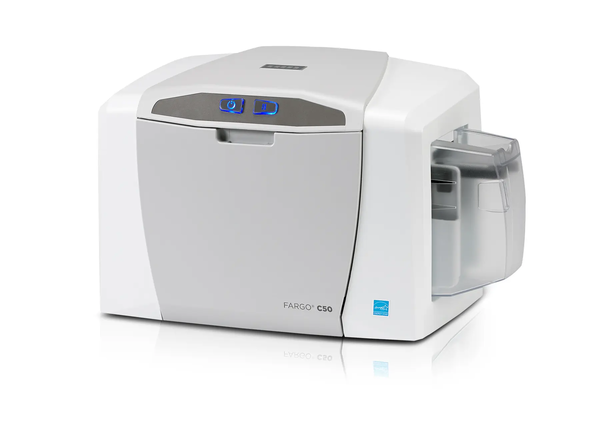 The Fargo C50 card printer is designed to print single-sided ID cards and badges on demand. Compact and easy-to-use, the Fargo C50 printer reliably issues high-quality badges at an affordable price point.