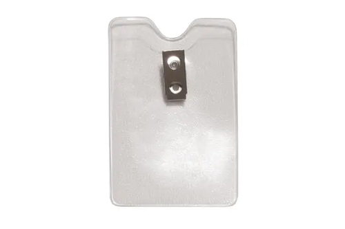 Durable and professional, this flexible vinyl badge holder features an orange peel textured back that prevents ID cards from sticking, ensuring smooth insertion and removal. A built-in 2-hole clip makes it easy to attach to clothing, lanyards, or reels for everyday convenience. Available in horizontal or vertical layouts with both side-load and top-load options, these holders provide a clear view of credentials while keeping them protected from wear and tear. Ideal for offices, schools, and events.
