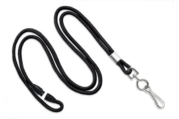 Simple and effective, this is our most economical lanyard solution. Offer your customers a no-frills card accessory. 1/8" width, made of polypropylene. Nickel-plated steel swivel hook end fitting for easy card attachment. Includes a breakaway.