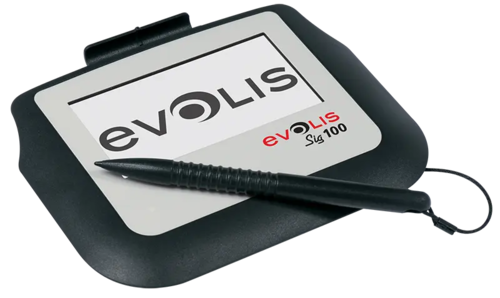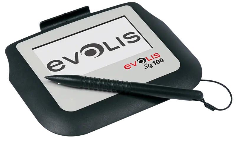 The Sig100 is a signature pad with a monochrome LCD screen, using resistive technology