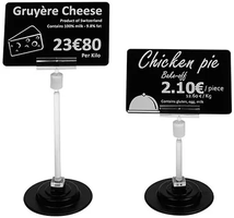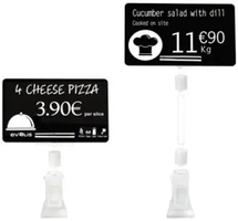 The Edikio product line includes various price tag and buffet tag holders adapted to your business: metal or plastic, narrow or wide, magnetic, to be placed on a surface or inserted in, allowing two cards to be attached, etc.