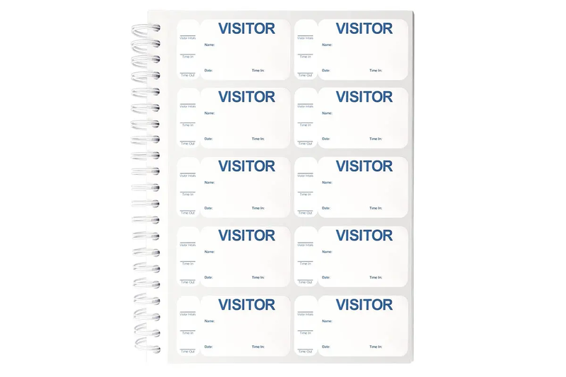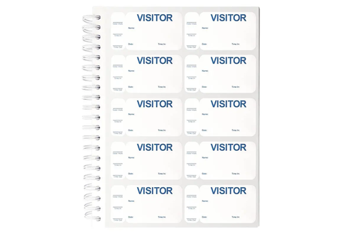 Each log book contains 50 pages with 10 badges per page, for a total of 500 badges. The badges feature a bold, printed header for role recognition and securely adhere to clothing, making visitor identification simple and reliable.