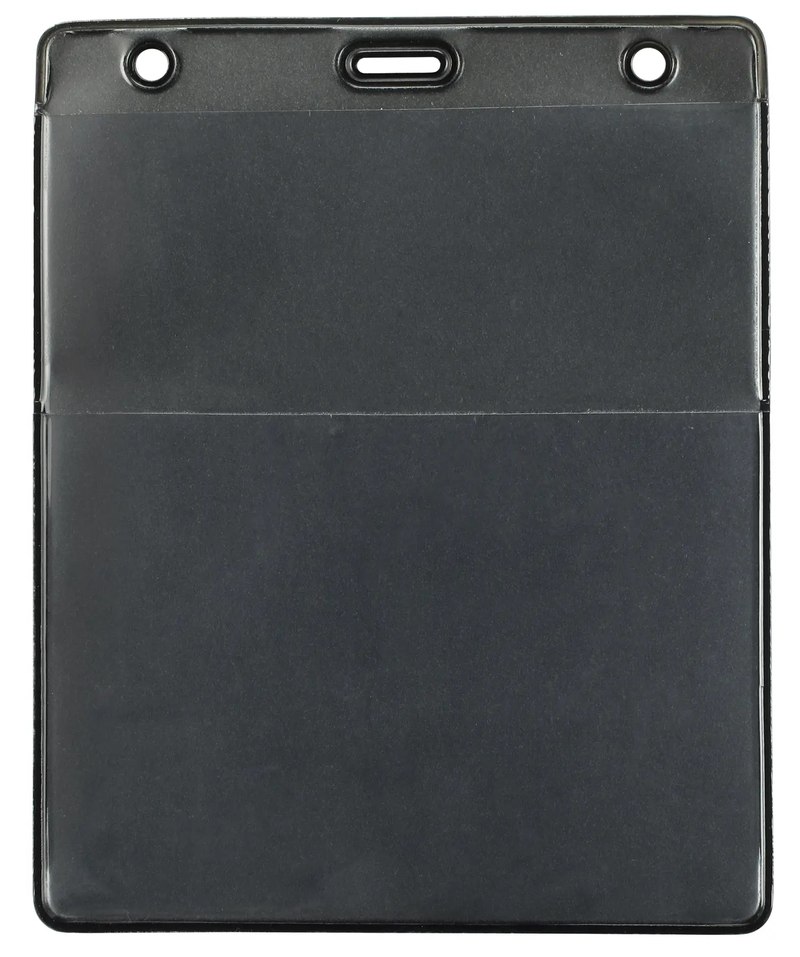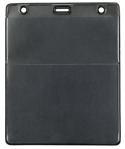 These event size credential wallets feature two clear front pockets with a solid colored back. Front has one large pocket (4.88" H x 4.25" W) and one small pocket (3.00" H x 4.25" W). Plenty of room to display a name badge plus carry tickets, money, credit cards, business cards, etc. Includes slot and chain holes at top for easy attachment.