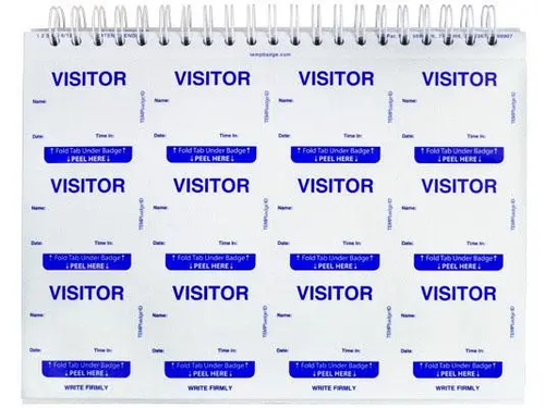 We also provide sign-in books that double up as badges for visitors. They enter their information, then tear off an adhesive sticker to use as a badge. Then, you have a record of their details for you to keep, compiled in one place for all of your visitors.