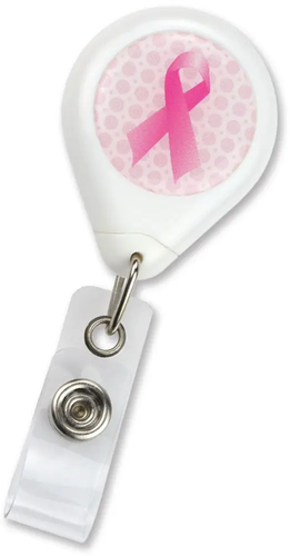 White Premium Badge Reel with Pink Awareness Ribbon